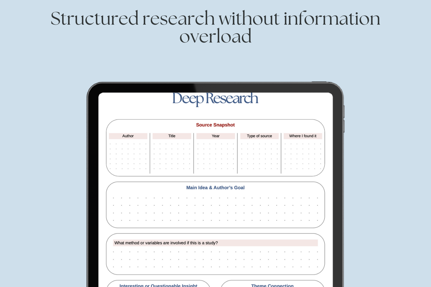 Flow+ shows you exactly what to focus on at each stage: breaking down the question, processing research, connecting ideas, forming arguments, and building structure, without skipping the thinking in between.