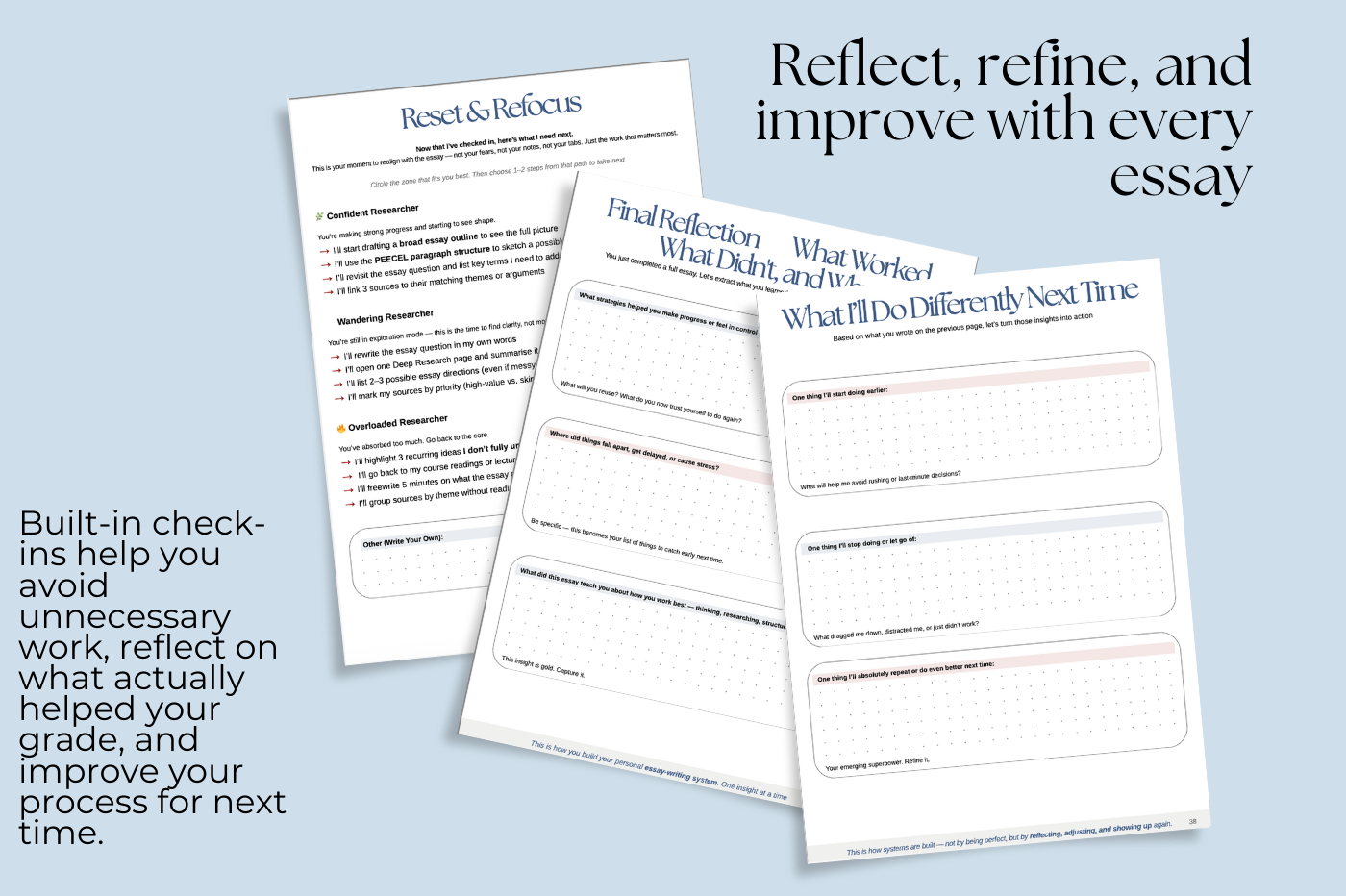 Flow+ is essentially a guided journal (with prompts) meets an essay planner, designed to take you through the entire essay writing process in a clear, linear way. Built by me, Kiara, a university student who wanted a clearer, smarter way to write essays.